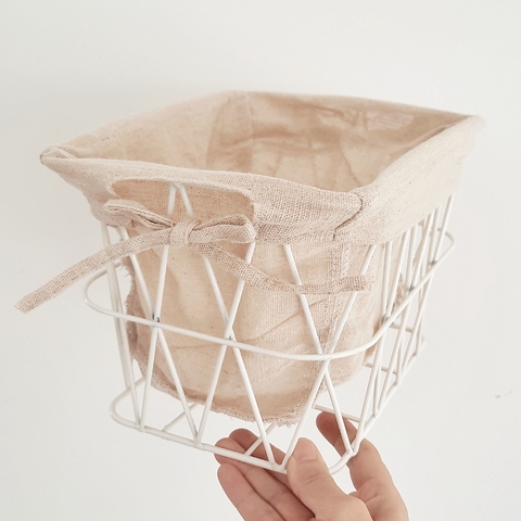 Canasto de estructura metálica blanca, con dibujo de rombos, pintada a horno.